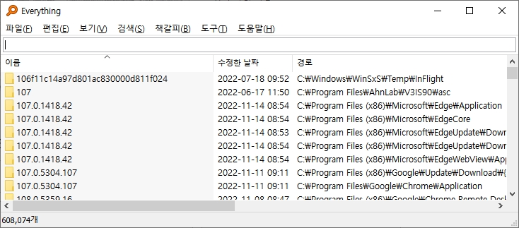 너무나도 빠른 속도로, 원하는 파일을 즉각적으로 찾아주는 프로그램, Everything 입니다.